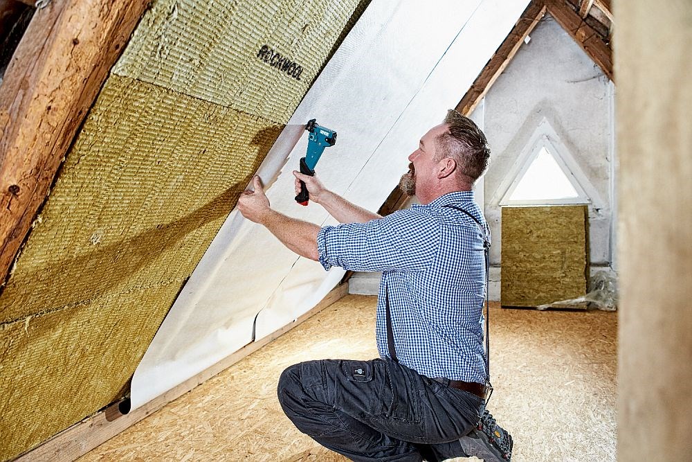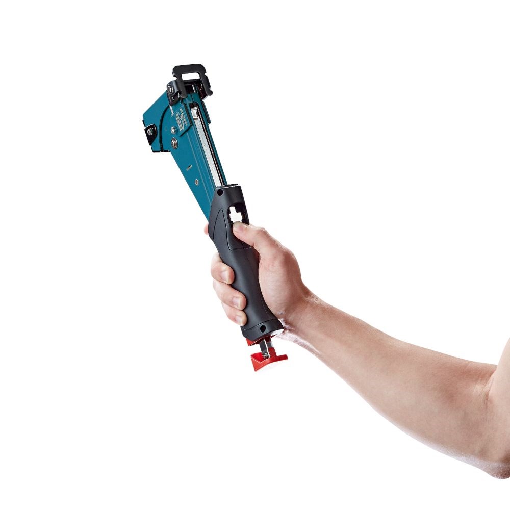 Profesionalna čekić-klamerica tj. udarna klamerica za brzi rad sa plosnatim žičanim klamericama za kontinuiranu upotrebu kod proširenja krova ili suhozidne konstrukcije.