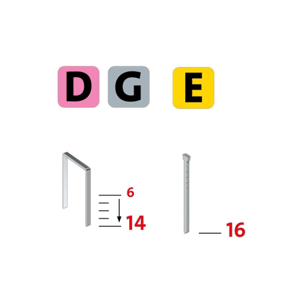 Koristi ravne žičane klamerice (D/53) do 14 mm i čavle (E/J) do 16 mm kao i klamerice G/11