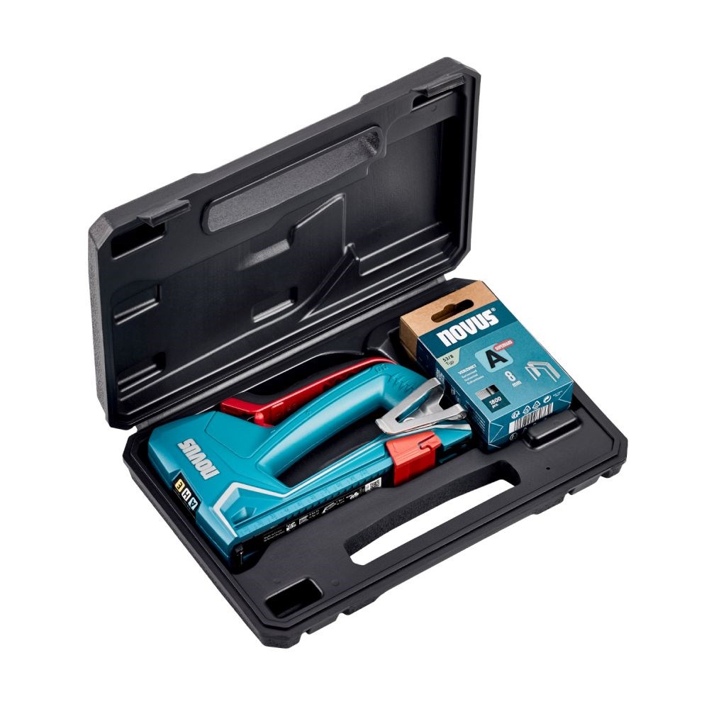 Moćna profesionalna tapetarska klamerica za pričvršćivanje širokog spektra tkanina i ukrasnih letvica na gradilištima i u radionicama.