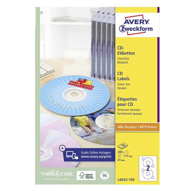 Etikete za CD/DVD. Ispis na inkjet i laserskom pisaču (c/b i kolor) te fotokopiranje.