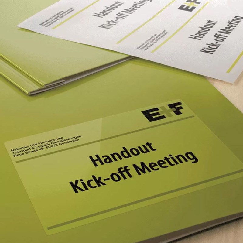 Kao elegantne naljepnice proizvoda, za prezentacijske dokumente i poklon kutije, označavanje uredskog pribora, natpisa na prozorima, znakova na vratima ili adresiranja. Efekt naljepnice: natpis izgleda kao da je otisnut izravno na podlogu.