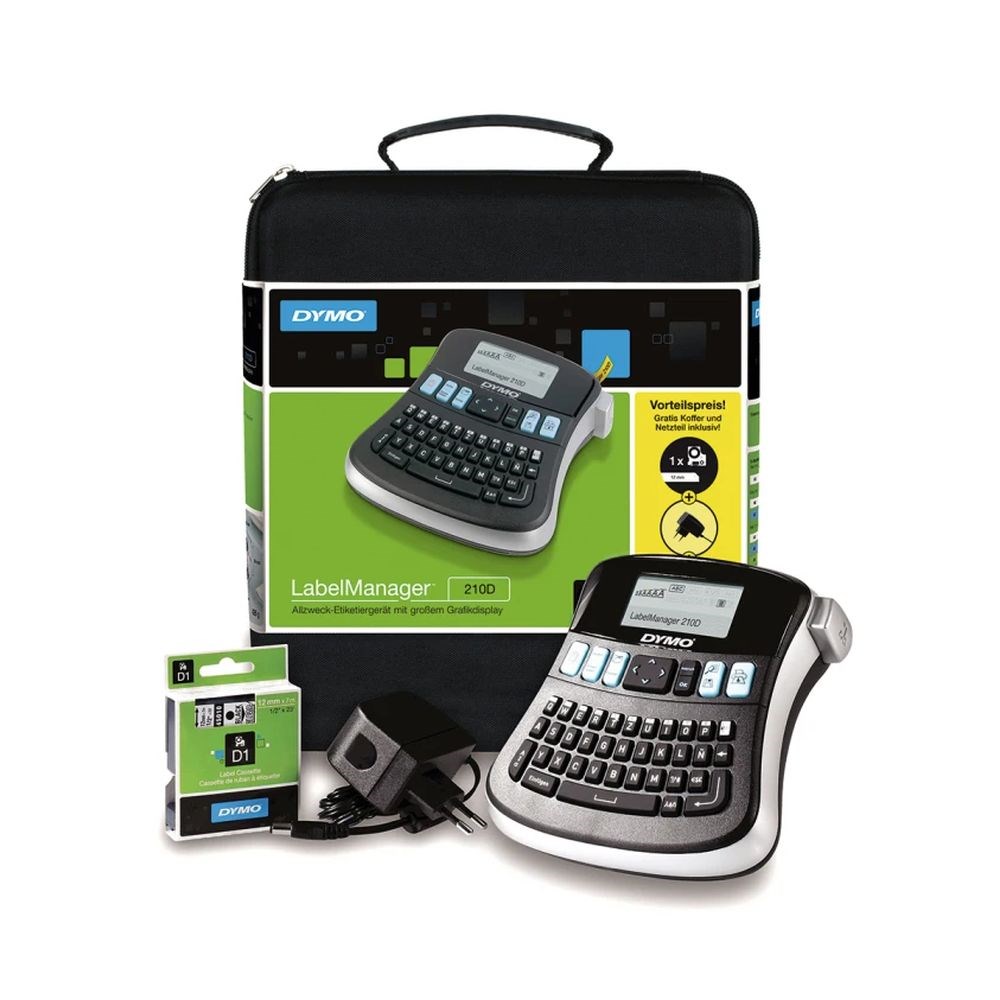U paketu: D1 Starter kaseta, crno na bijelo 12 mm x 3 m, D1 Starter kaseta, crno na žutom 12 mm x 3 m, 6 x AA baterije, AC adapter, Upute