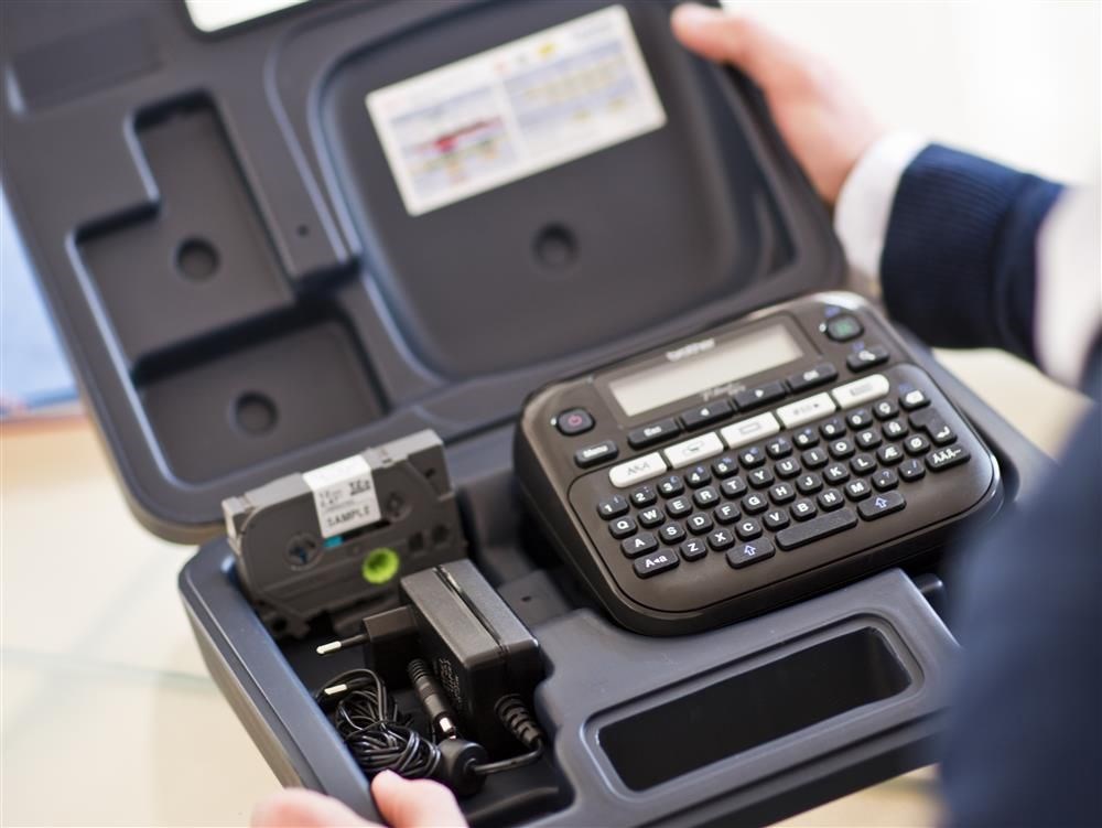PT-D210VP je stolni pisač naljepnica u prijenosnom kovčegu, koji će vam pomoći organizirati svoj ured. Svestran, jednostavan za korištenje, brzine ispisa do 20mm u sekundi. Možete označiti i organizirati sve od uredskih datoteka do CD kutija koristeći QWERTY tipkovnicu, i birati različite fontove, okvire i znakove u raznim veličinama.