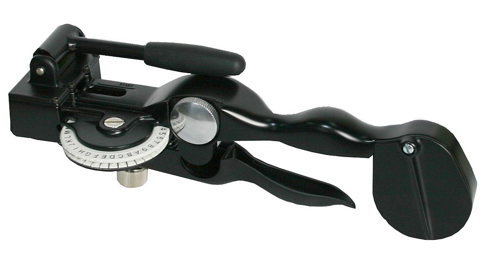 Profesionalni mehanički aparat u metalnom kućištu. Tiska utiskivanjem znakova na metalnu (čeličnu ili aluminijsku) traku. Tisak je jednoredni, neograničene duljine, traka se ručno reže.