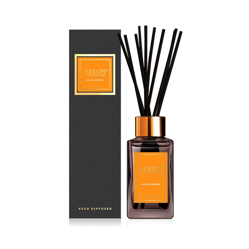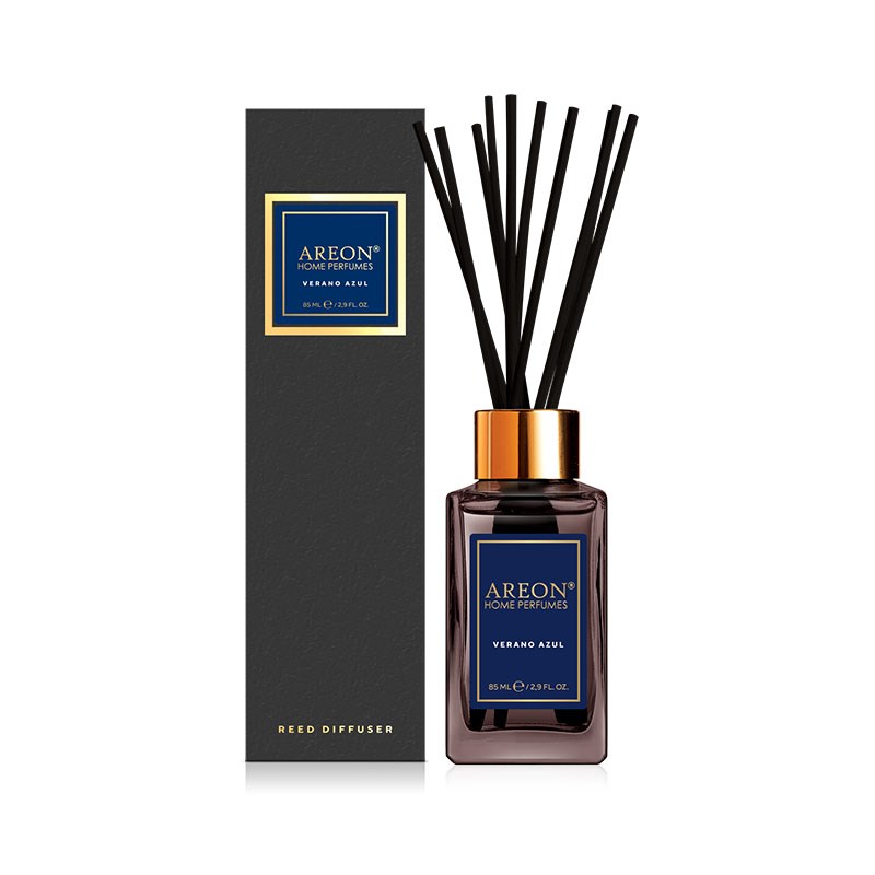 Pažljivo odabranim i jedinstvenim mirisima unesite svježinu u svoj prostor. Set sa crnom staklenom bočicom 85 ml i 10 ratan štapića, elegantnog izgleda. Izbor sljedećih mirisa: Gold Amber, Vanilla Black, Verrano Azul, Peony Blossom