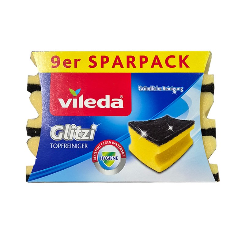 Vileda Professional Glitzi spužva za čišćenje, ribanje i odstranjivanje tvrdokorne prljavštine te zapečenih ostataka hrane na posuđu. Utori koji štite nokte. Crni abraziv za čiščenje neosjetljivih površina.