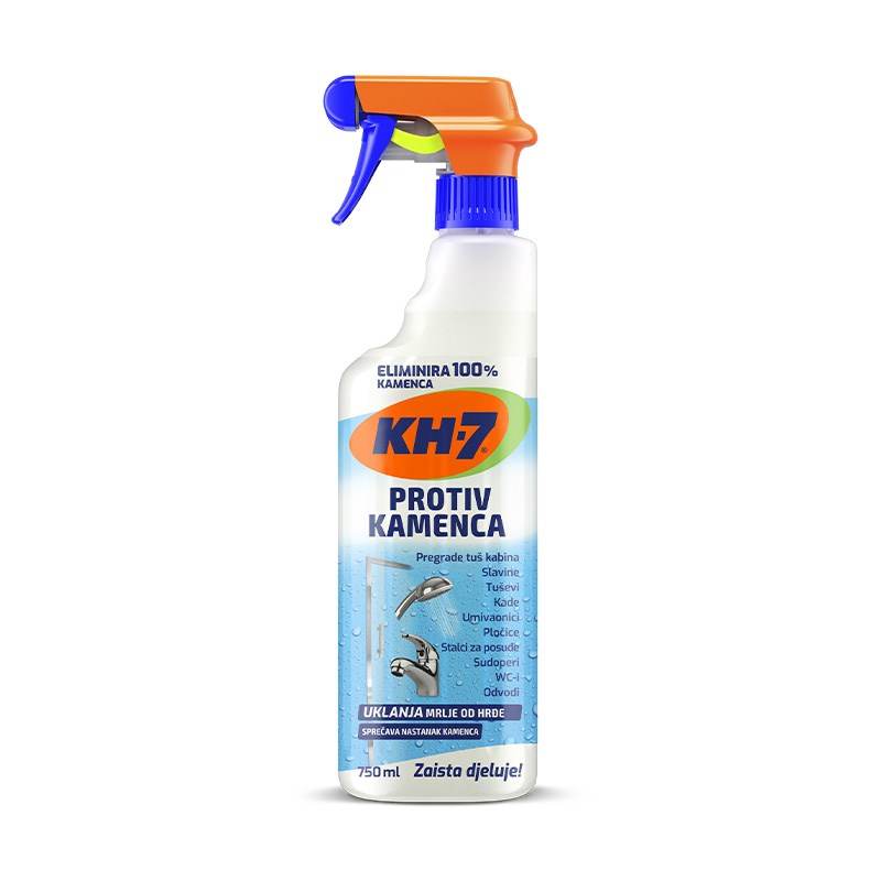 Sredstvo za uklanjanje kamenca KH-7 posebice je izrađeno za lako i brzo uklanjanje kamenca. Zahvaljujući njegovoj vodootpornoj zaštiti površine će dulje biti čiste i sjajne. Opremljen raspršivačem s pjenom kojim se olakšava čišćenje i koncentrira učinak proizvoda na različite prostore i površine.