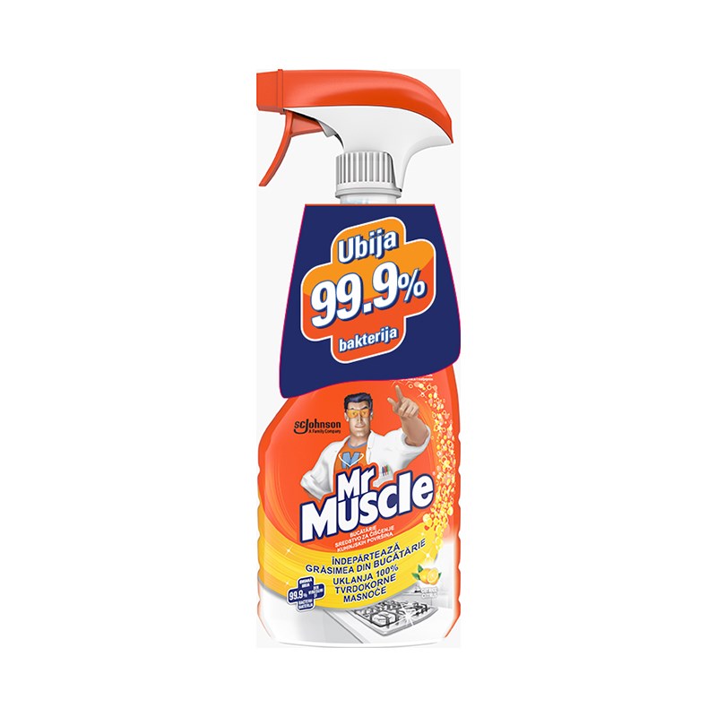 Sredstvo za čišćenje kuhinje s pumpicom za raspršivanje. Brzo i efikasno uklanja masnoću i prljavštinu.