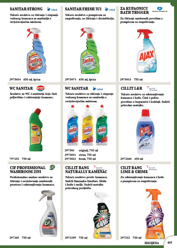 Tekuće sredstvo za čišćenje koje s 5x snažnijim djelovanjem i formulom na bazi fosforne kiseline ubija sve bakterije u 60 sekundi od primjene. U potpunosti uklanja tvrdokorni kamenac i hrđu, a jednostavna primjena pjenom osigurava dulji kontakt s površinom i savršene rezultate čišćenja svaki put, bez neugodnih mirisa. Preporučuje se za temeljito čišćenje sanitarija, keramičkih pločica, umivaonika, kada i tuš kabina.