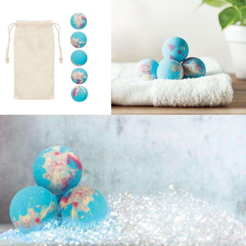 5 pjenušavih bombica za kupanje u pamučnoj vrećici. Bomba veličine Ø4 cm u mirisu Oceana.