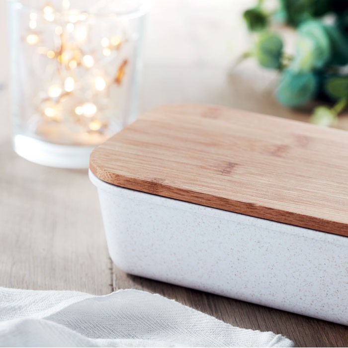 Kutija za hranu od 50% bambusa i 50% PP. Poklopac od bambusa.