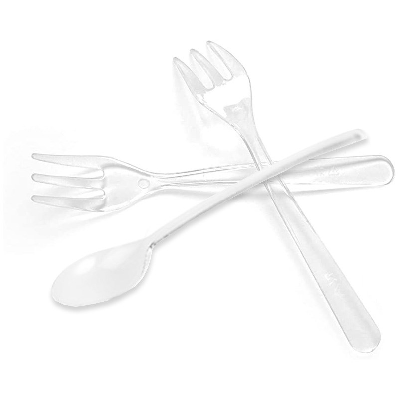 Vilice i žlice za deserte i drugo. Izrađene od polistirena, mogućnost pranja i višekratnog korištenja. Dužina 10cm, prozirno.