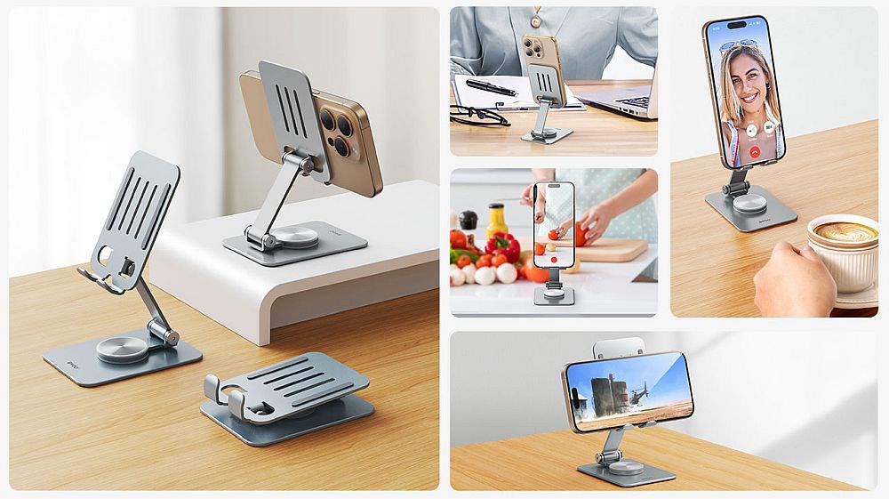 Stalak za pametne telefone posjeduje sustav rotacije u 3 osi koji omogućuje vam jednostavno podešavanje kuta telefona za optimalno gledanje tijekom videopoziva ili streaminga
