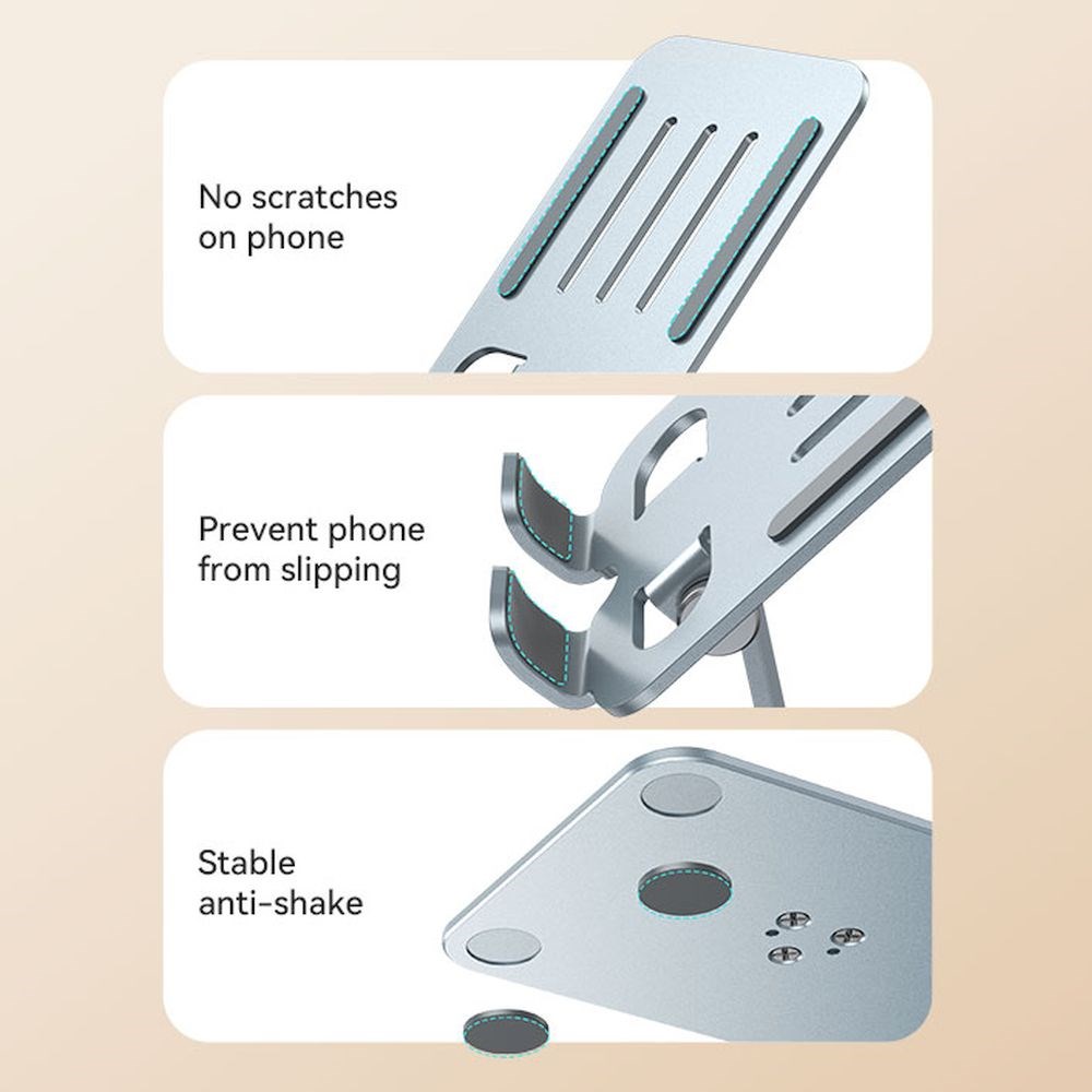 Neklizajući silikonski jastučići na podnožju i nosaču telefona sigurno pričvršćuju vaš uređaj, sprječavajući ogrebotine i slučajne padove.