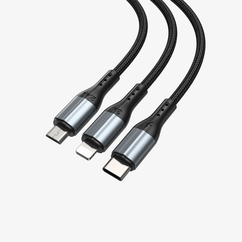 USB-A na Lightning (3A) / na USB-C (3A) / na micro USB (2,4A)