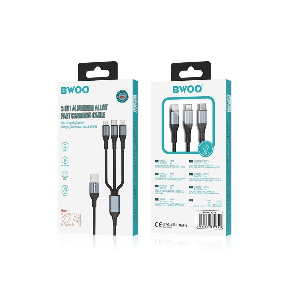 BWOO 3-u-1 kabel za brzo punjenje idealan za čitav niz pametnih telefona i tableta sa različitim priključcima.