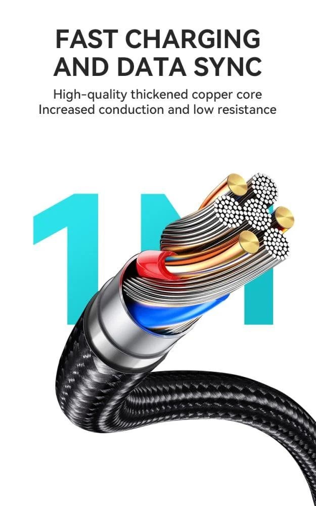 Najlonski pleteni USB-C podatkovni kabel ima visokokvalitetne zadebljane bakrene unutarnje jezgre prekrivene izdržljivim najlonskim pletenim omotačem koji je čvrst i mekan te se odupire svakodnevnom petljanju i lako podnosi zahtjeve svakodnevne upotrebe, što obećava impresivnu dugotrajnost