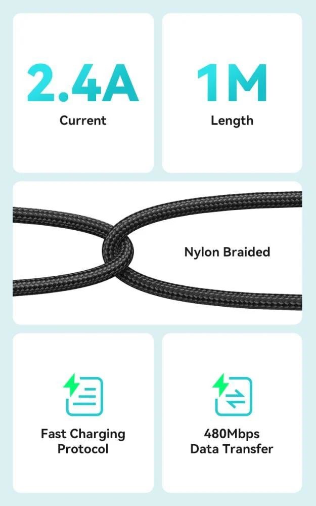 BWOO 2,4A USB-A na USB-C kabel za punjenje pruža punjenje PD 27W, što ga čini idealnim za pametne telefone i tablete.