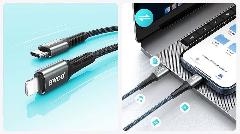 BWOO USB-C na Lightning kabel za punjenje pruža punjenje PD 27W, što ga čini idealnim za pametne telefone i tablete.