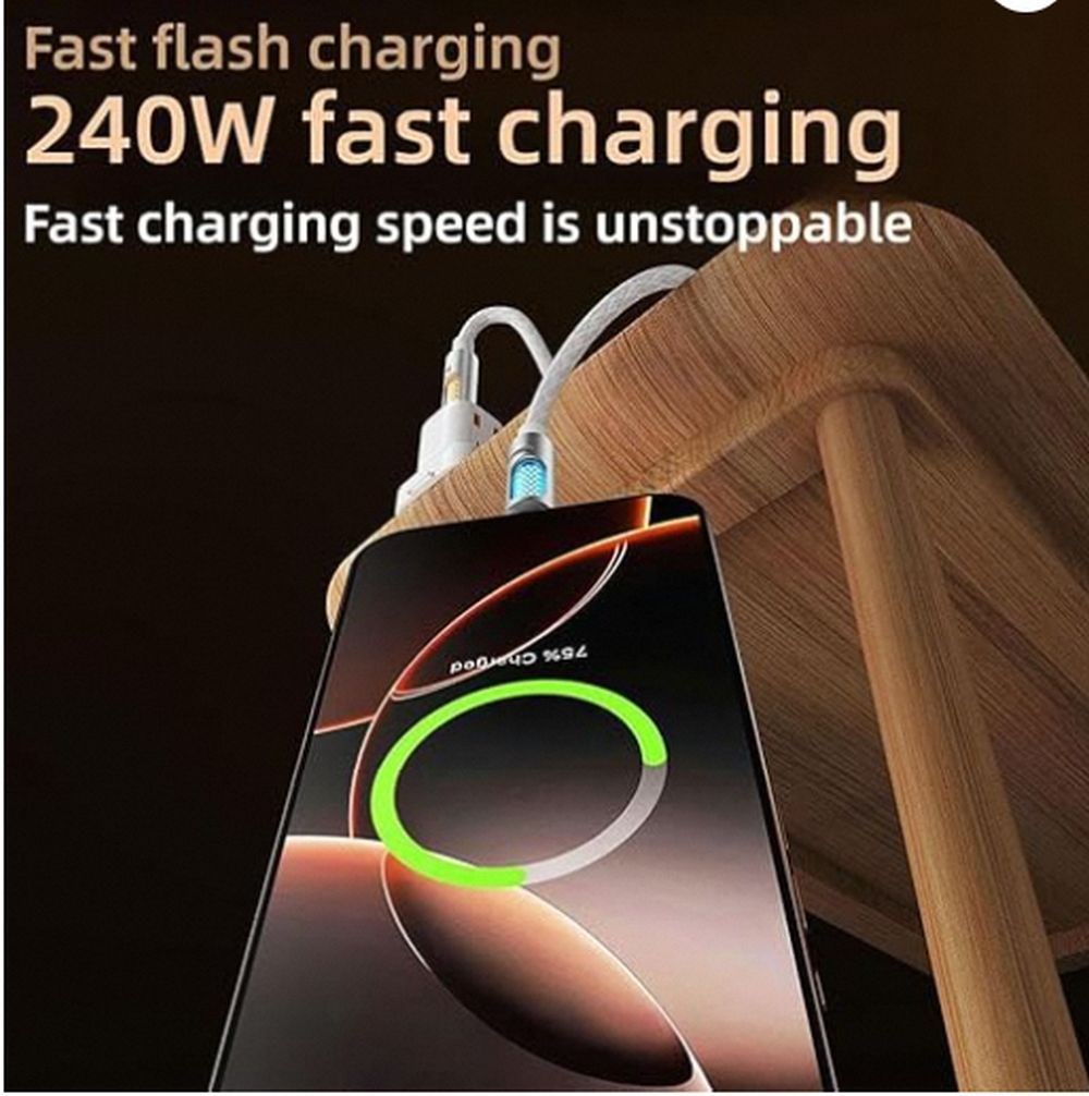 USB-C na USB-C kabel za punjenje pruža izlaznu snagu do 240 W, dok deblja bakrena jezgra osigurava bolju vodljivost, niži otpor i sigurniji prijenos velike struje,što ga čini idealnim ne samo za pametne telefone i tablete, već i za brzo punjenje prijenosnih računala. bilo da ste kod kuće, u uredu ili u pokretu.