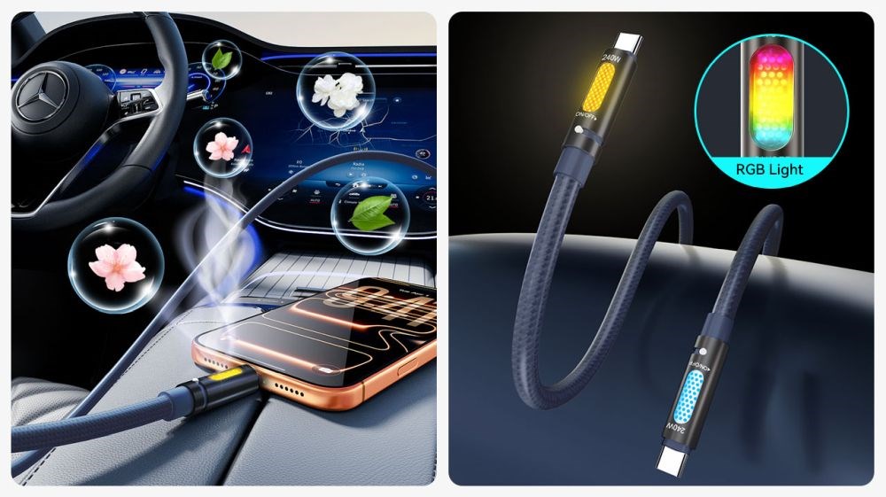 Kabel USB-C na USB-C s RGB ambijetalnim osvjetljenjem i aromaterapijom