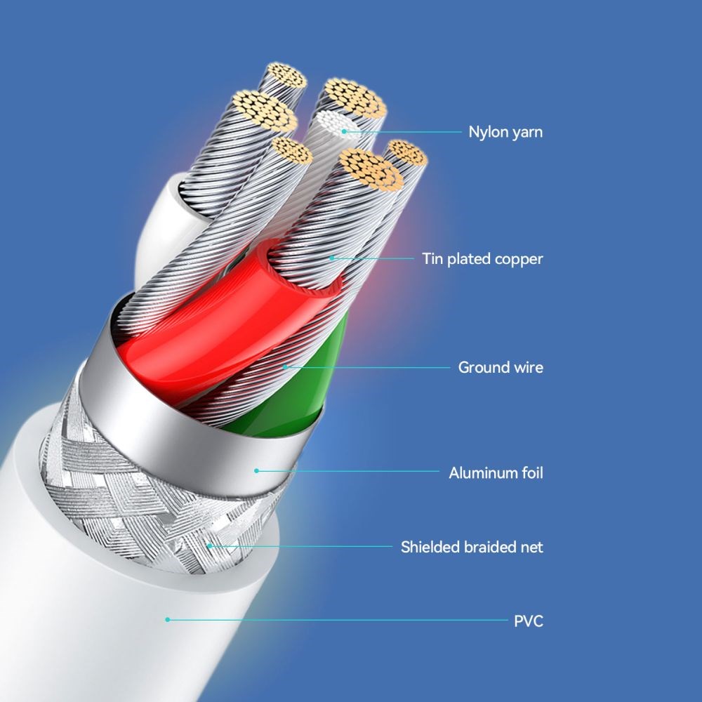 Kabel je izrađen od PVC-a, ugodan je za dodir, mekan i fleksibilan, bez sklonosti zapetljanju ili loma. Prolazeći test savijanja 10000 puta, ostaje jednako robustan kao i na početku.