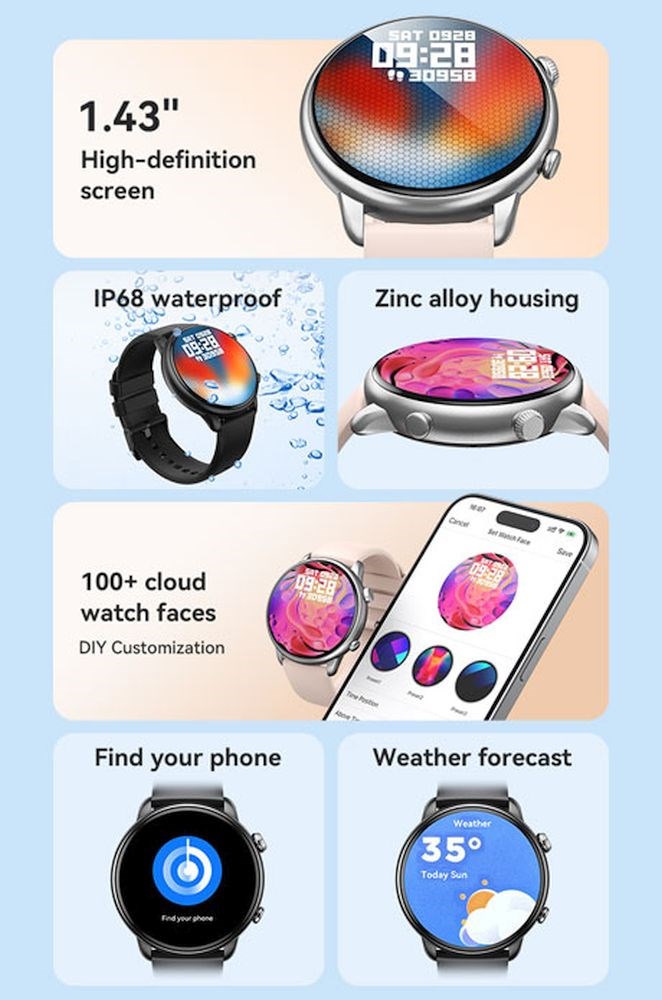 Ženski pametni sat Sport Fitness 1.43" Touch Screen IP68