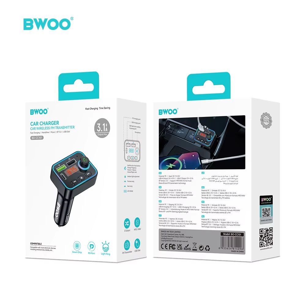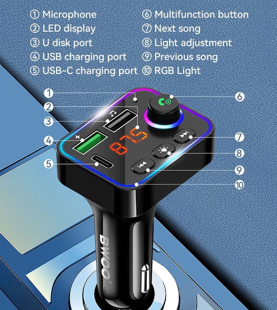 Ovaj bežični FM odašiljač koristi BT 5.3 verziju koji pruža jaču, bržu i pouzdaniju vezu. Uparite svoj pametni telefon i bežično prenosite svoje omiljene pjesme putem stereo sustava vašeg automobila..