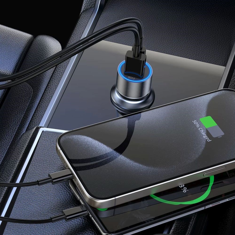 Auto punjač USB-A QC + USB-C PD, 43W