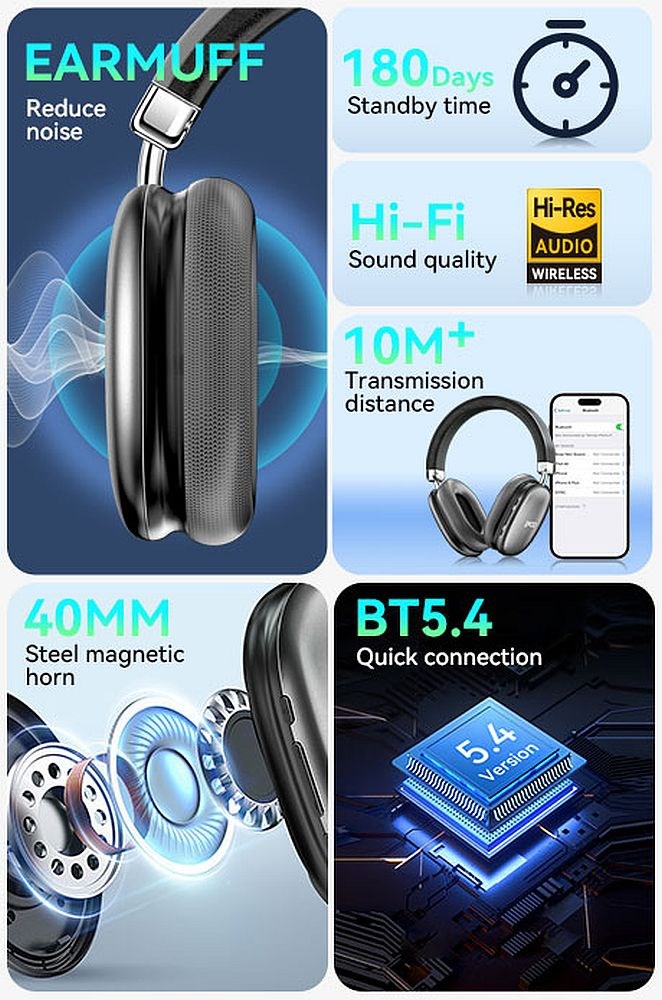 Multimedijske Bluetooth 5.4 naglavne slušalice s mikrofonom
