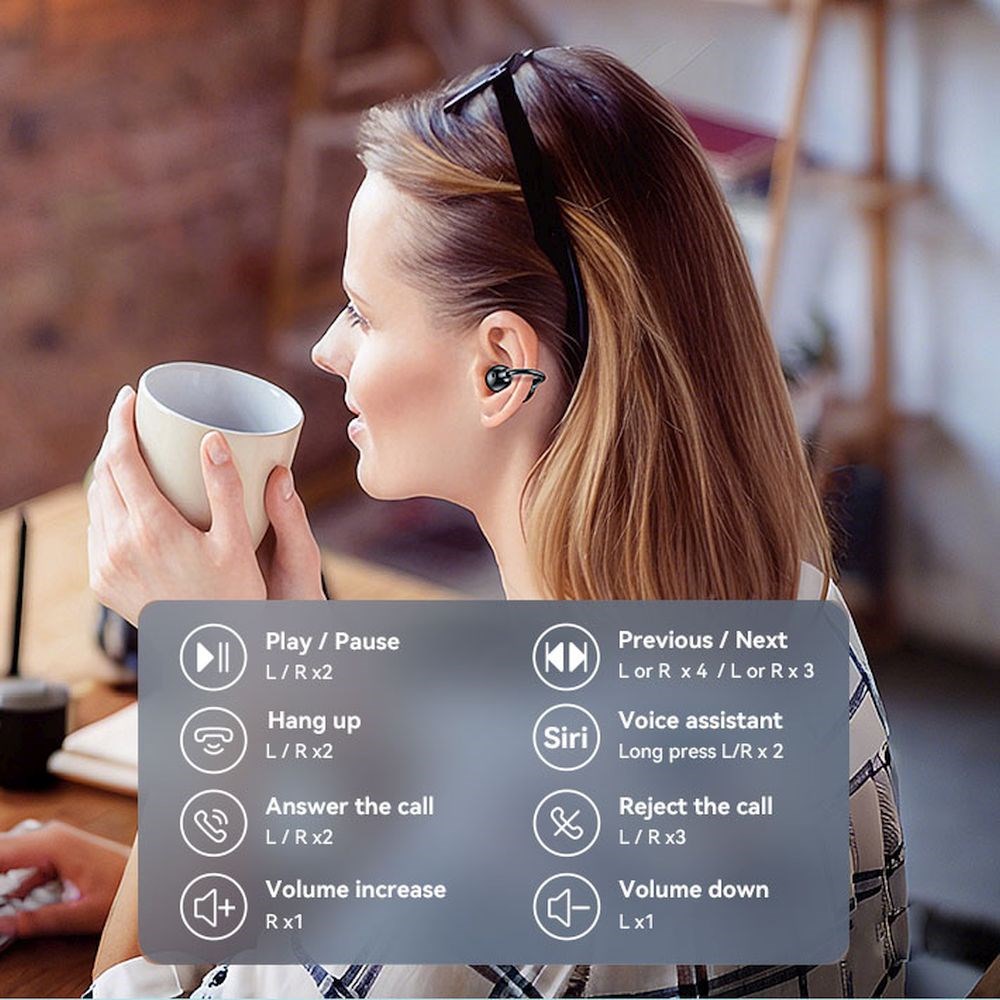 BWOO BO-BW39 bežične stereo slušalice s otvorenim kopčama za uši, dizajnirane da se besprijekorno prilagode vašim ušima, pružaju visokokvalitetan zvuk zahvaljujući visokokvalitetnim senzorima i modernoj Bluetooth 5.3 tehnologiji dometa 15 m
