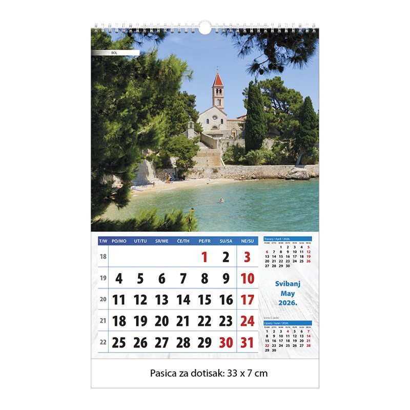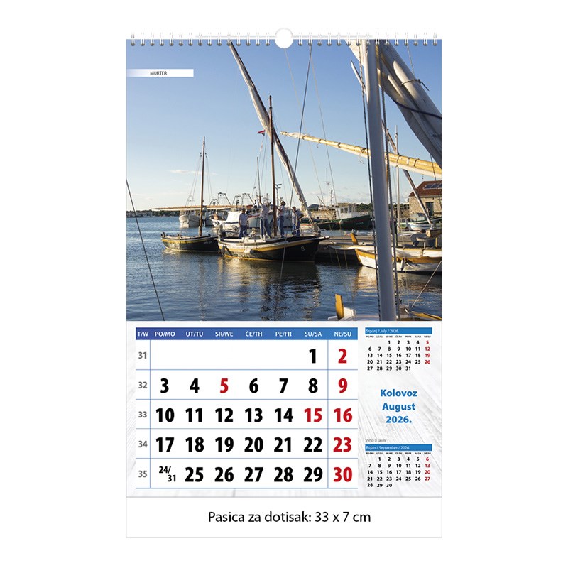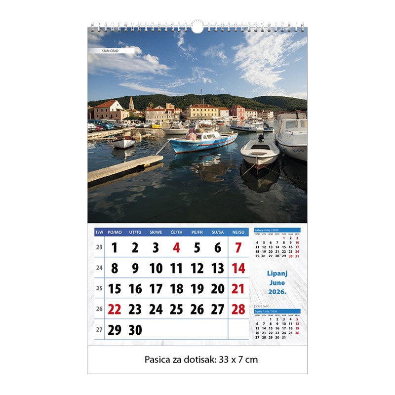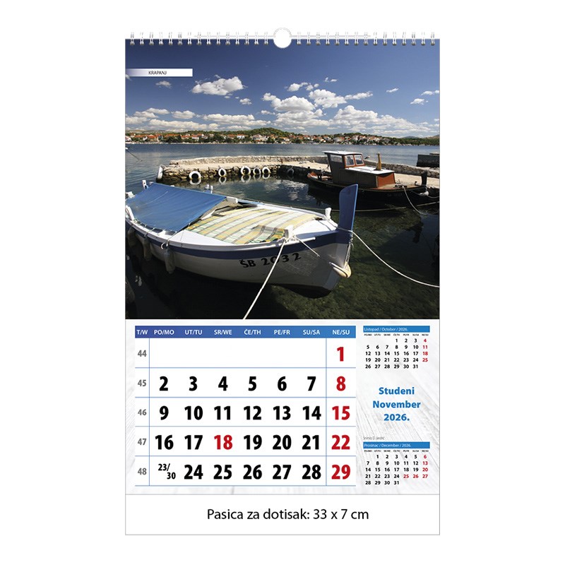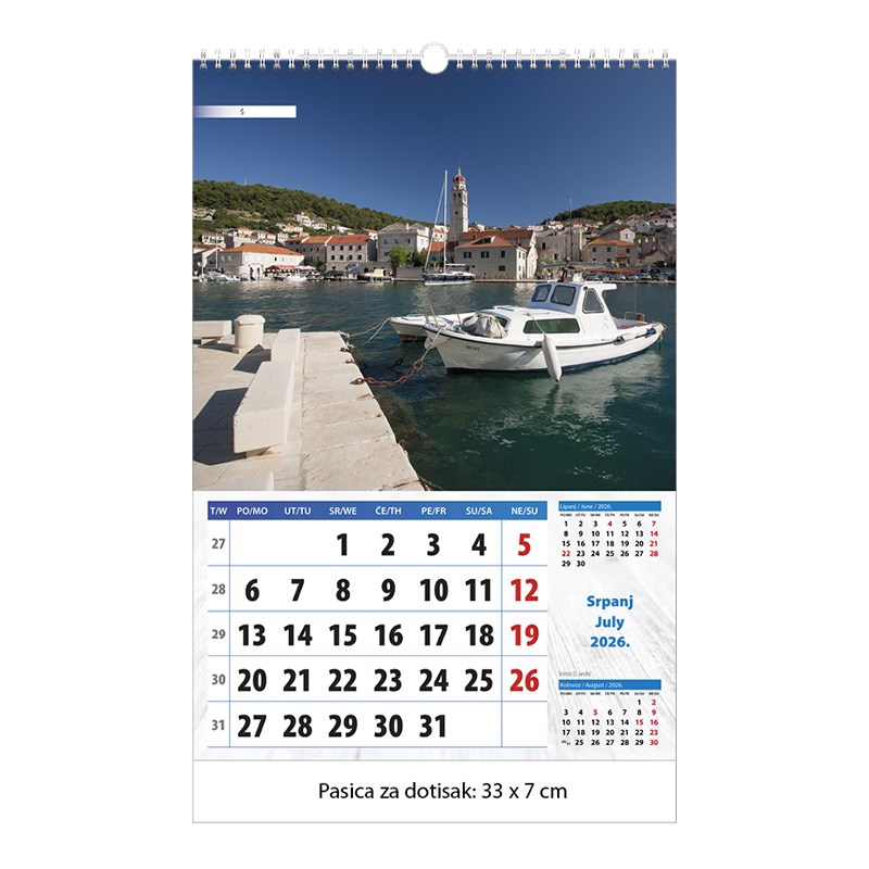 Mogućnost dotiska na pasicu na dnu kalendara.