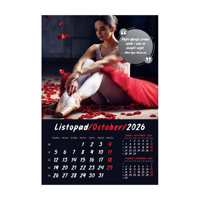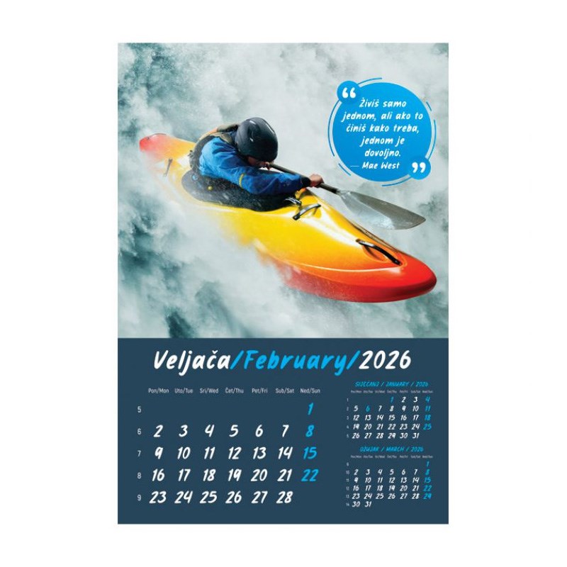 Zidni kalendar od 13 listova sa spiralom.