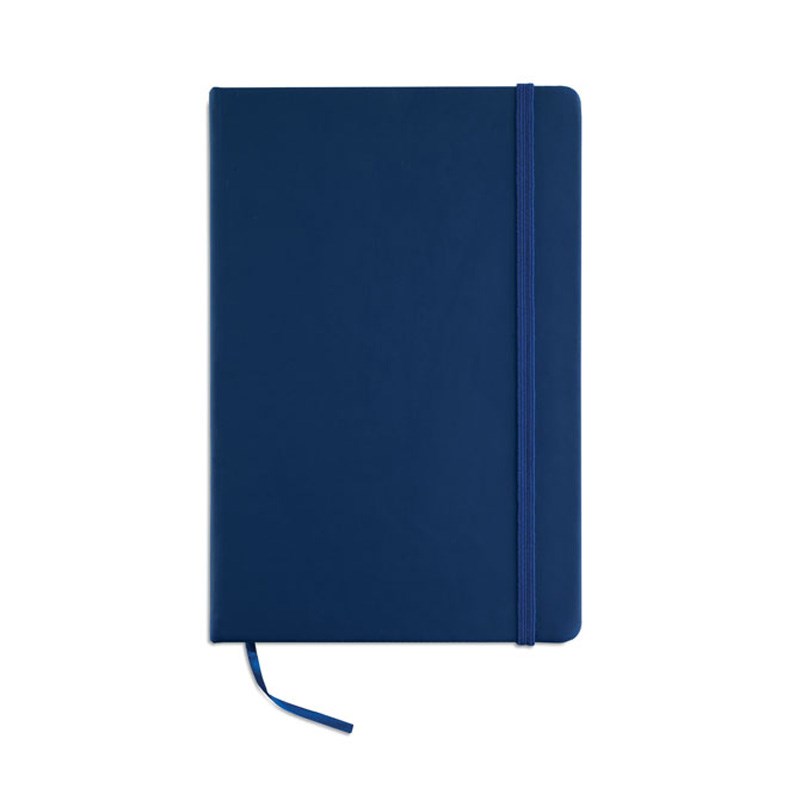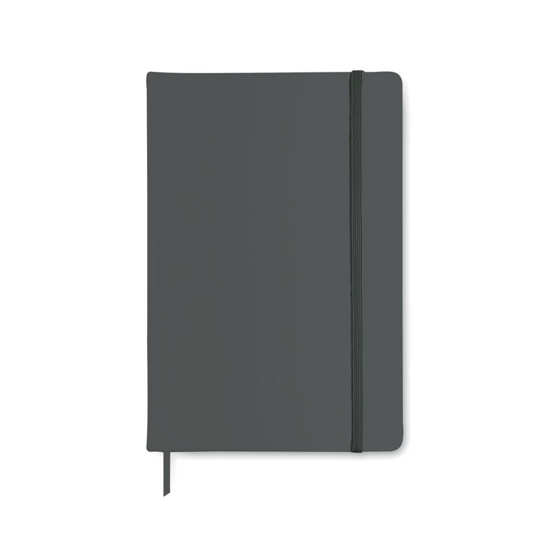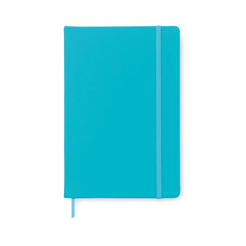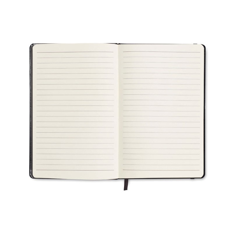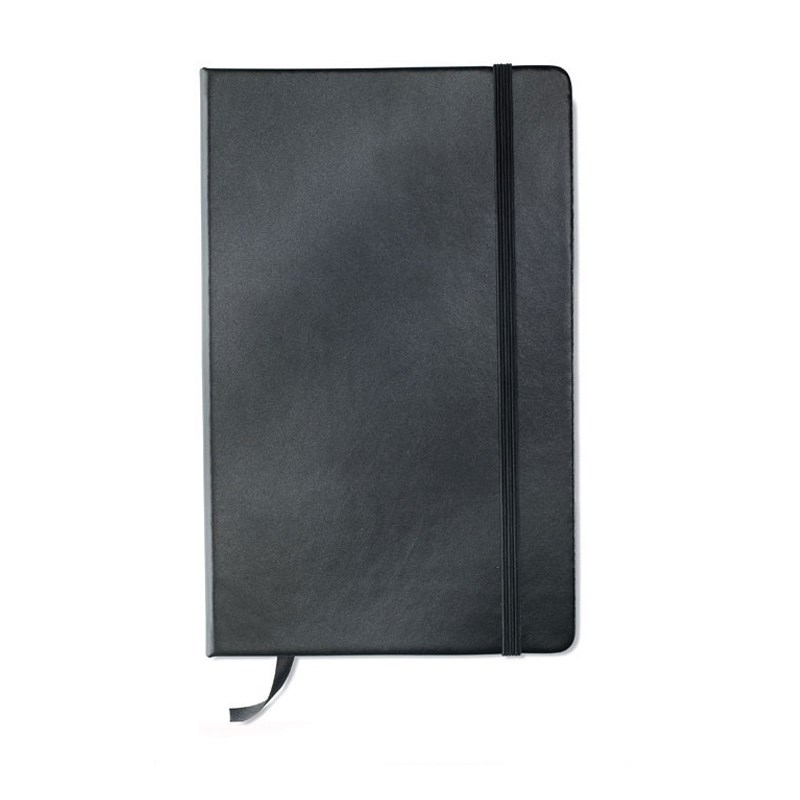 Notes formata A5, 96 stranica, crte, korice od mekog poliuretana, zatvaranje elastičnom trakom.