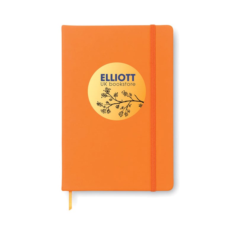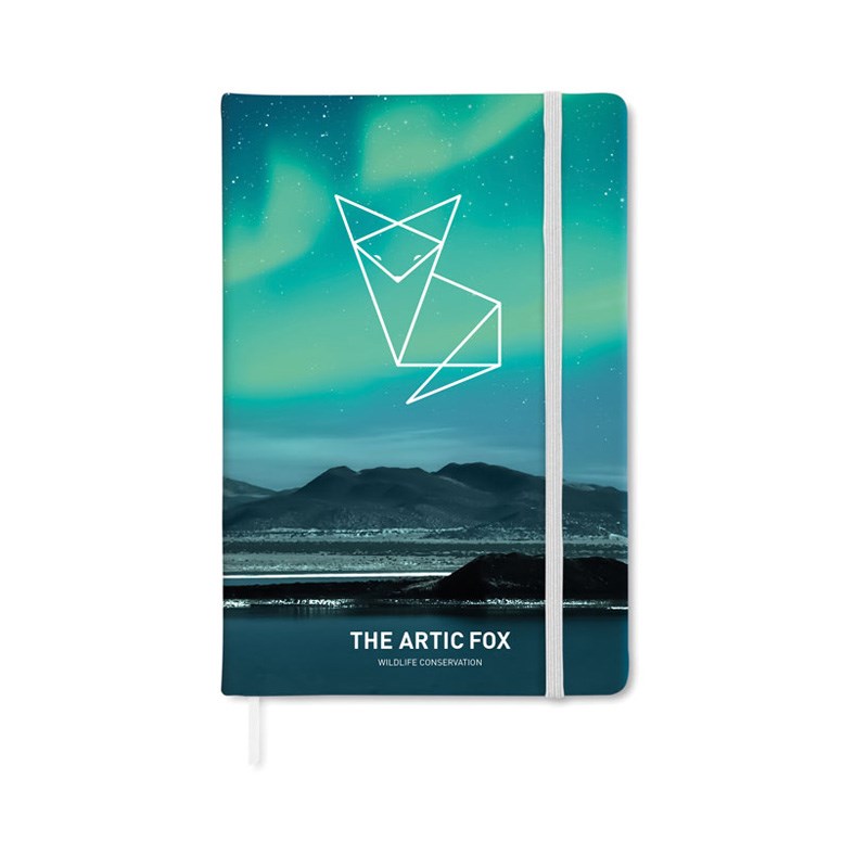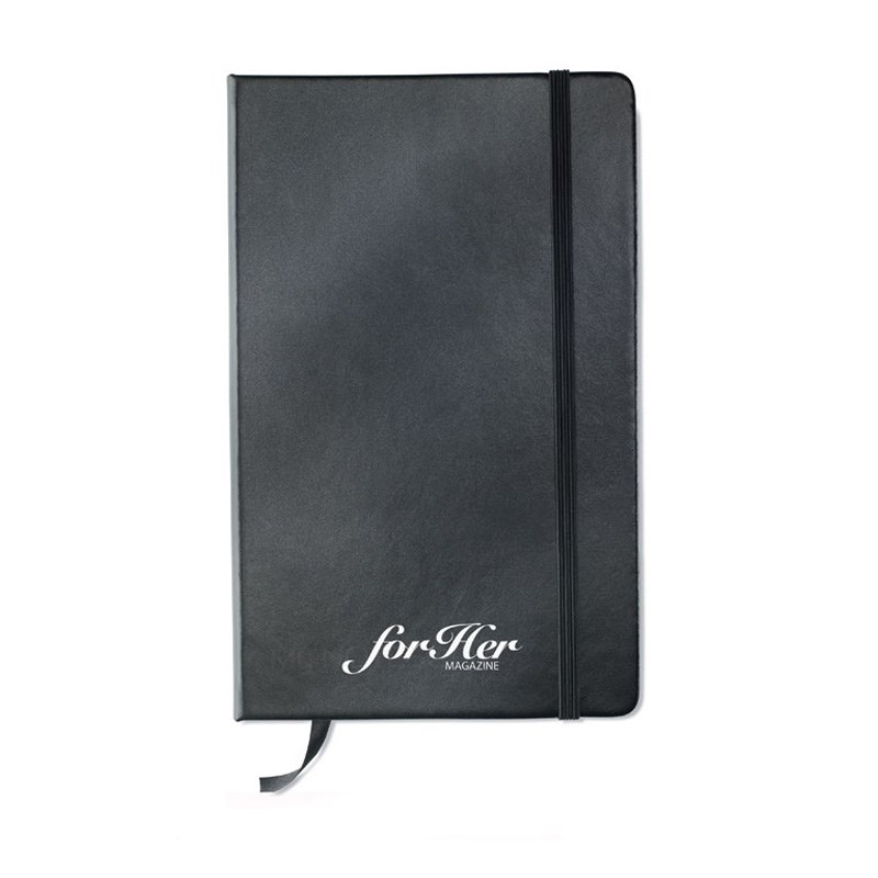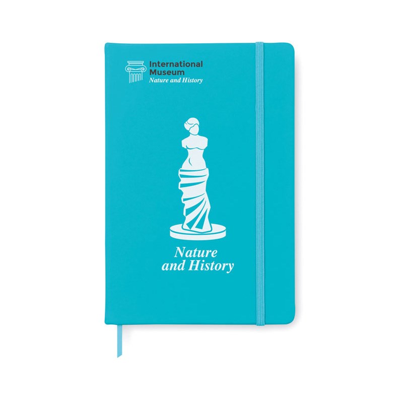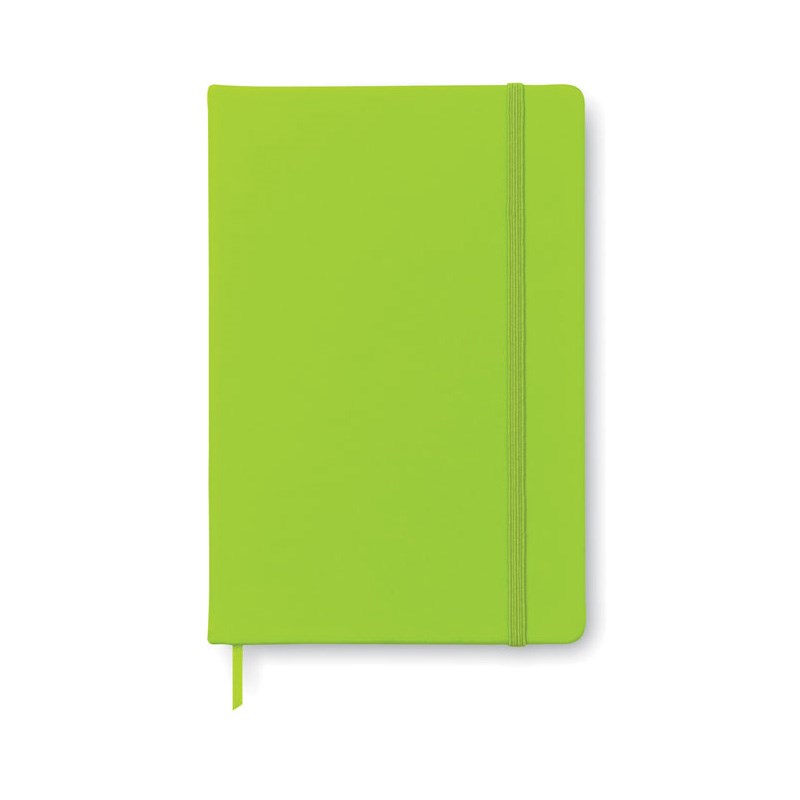 Notes formata A5, 96 stranica, crte, korice od mekog poliuretana, zatvaranje elastičnom trakom.