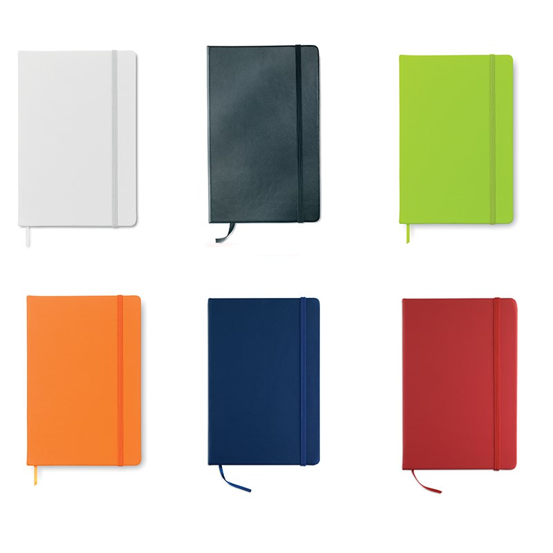 Notes A6 tvrdih korica sa zaobljenim rubovima i gumicom u boji notesa. Crte, 96 listova