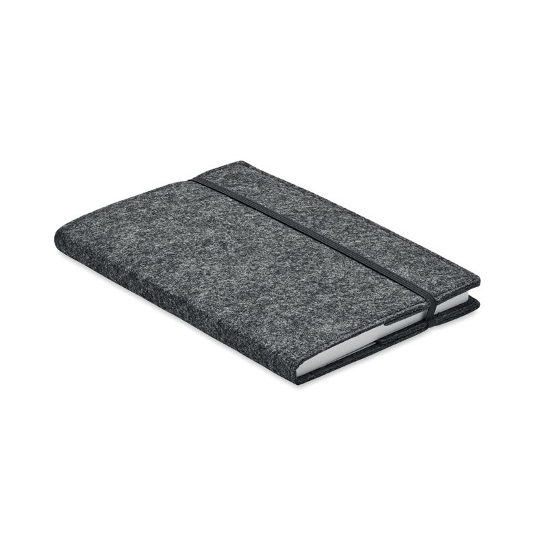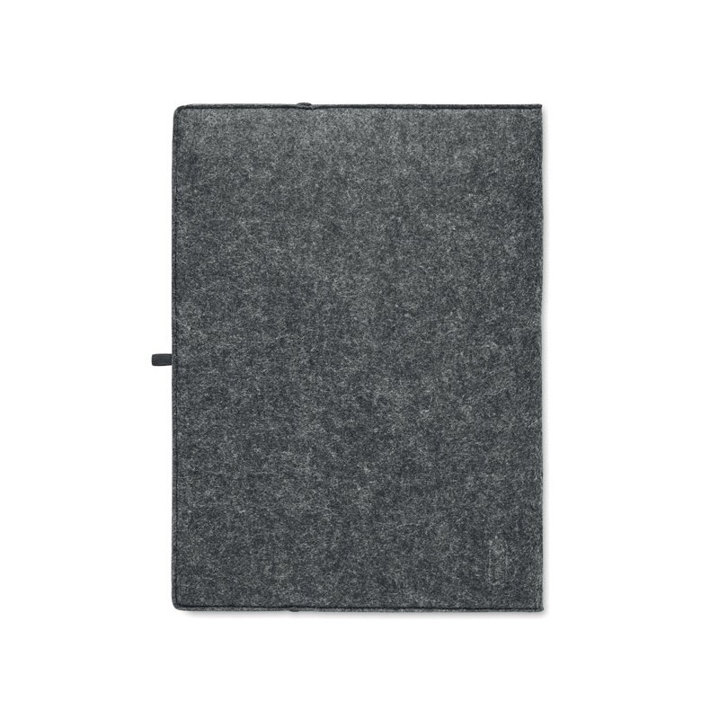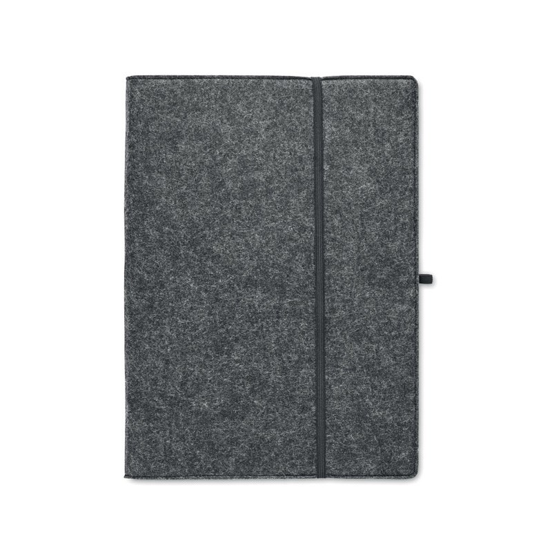 A4 konferencijski notes od RPET filca. Bilježnica od 100 crtanih listova s elastičnim držačem za olovke.