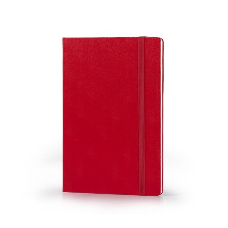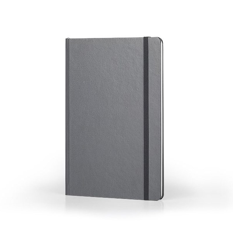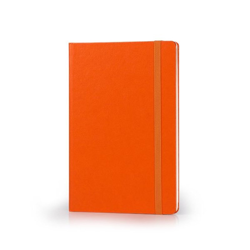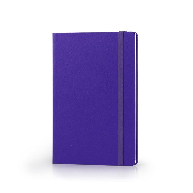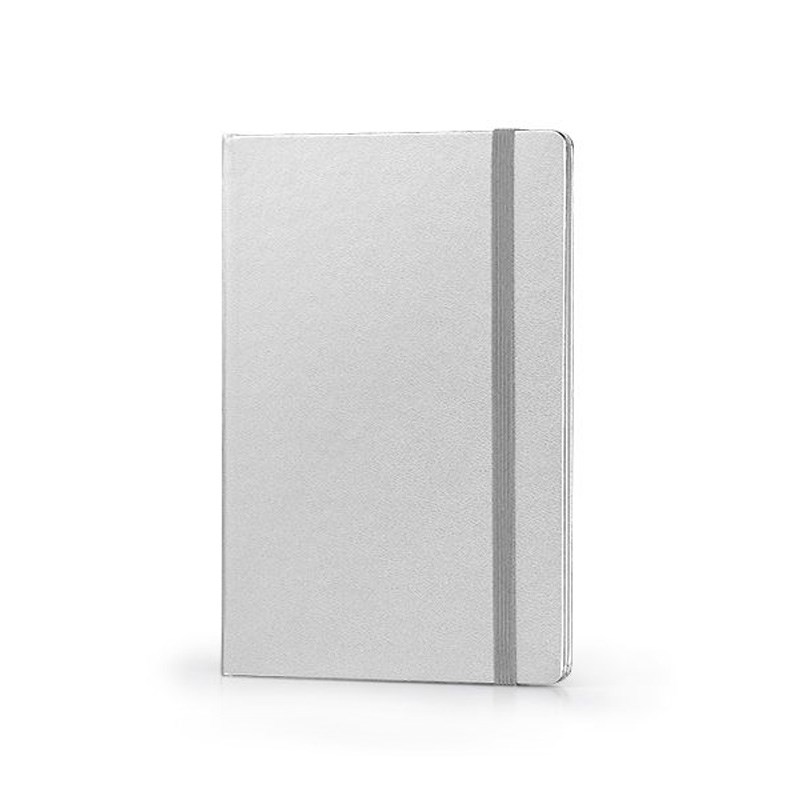 Notes A5 (14x21 cm) zaobljeni kutevi, 192 stranice krem 80gr. papir, crte + poč. stranica za osobne podatke, korice pogodne za tisak, gumica za zatvaranje u boji korica.