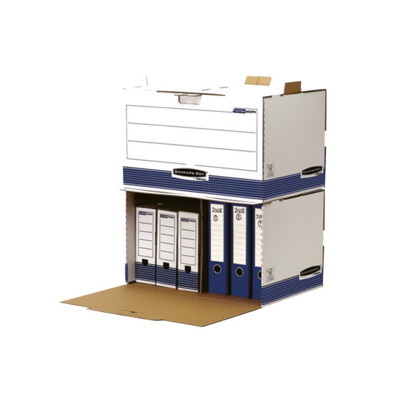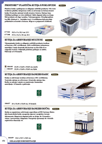 Kutija za organizirano arhiviranje napravljena od FSC kartona. Ekstra jaka konstrukcija kutije omogućuje sigurno i pregledno čuvanje dokumenata. Mogućnost slaganja jedne na drugu, do 5 komada u visinu, i povezivanje s klapnama. Omogućuje spremanje do 6 širokih registratora dimenzije A4.