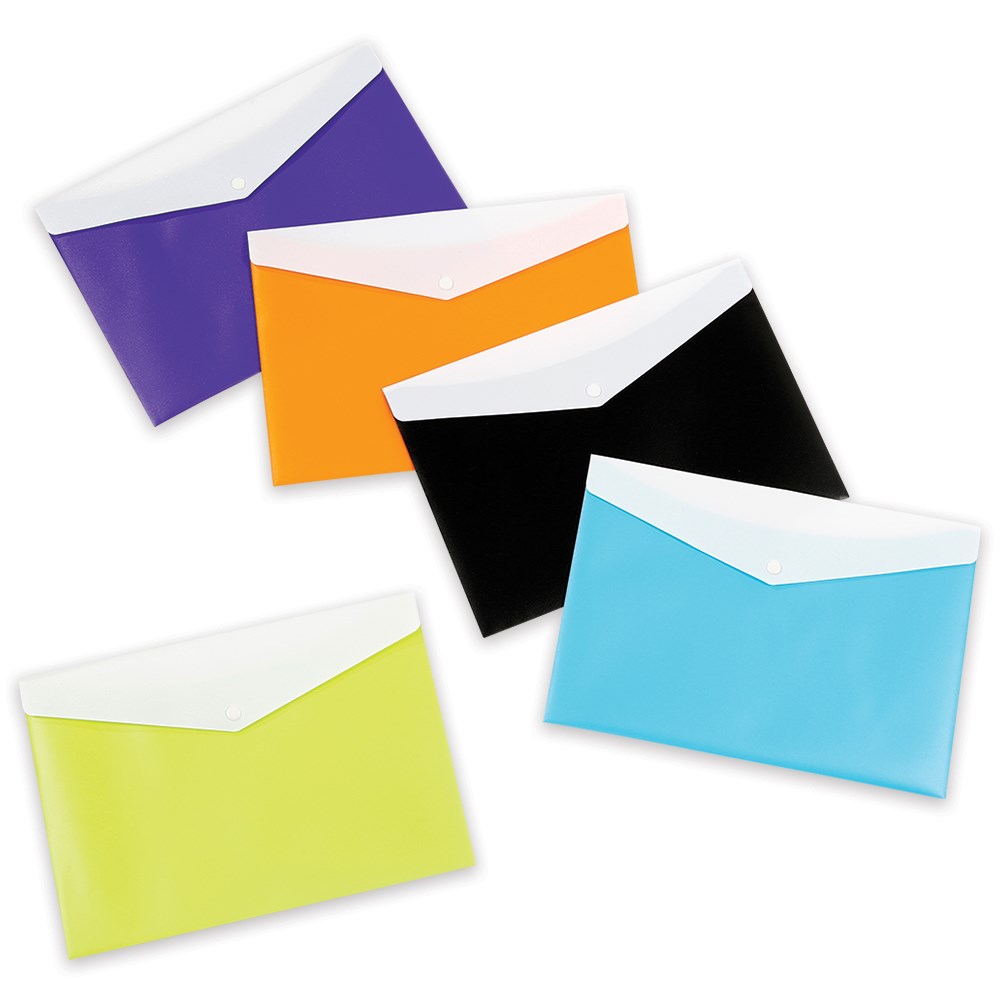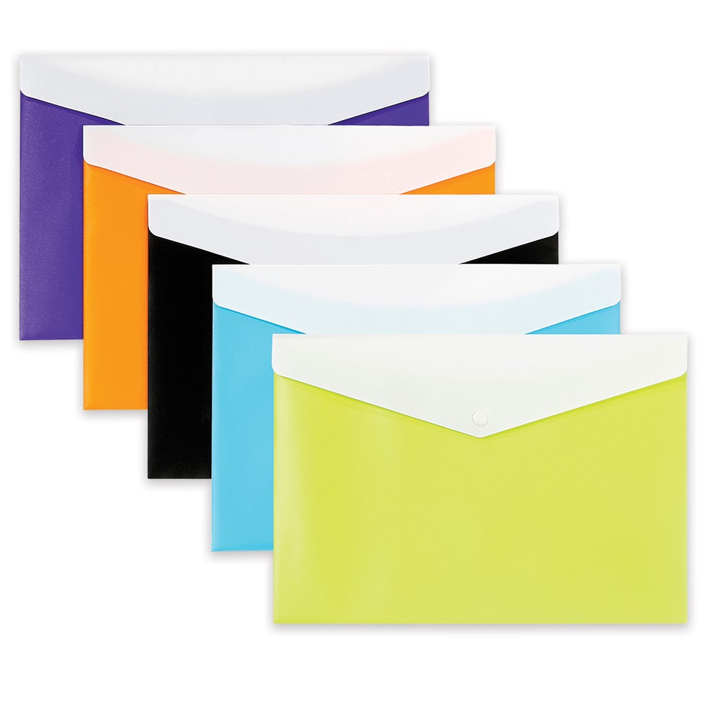 Kuverta ''kao pismo'' od mat polipropilena 2/10 u raznim bojama, zatvaranje bijela klapna s gumbom. Straga dodatni džep u punoj veličini.