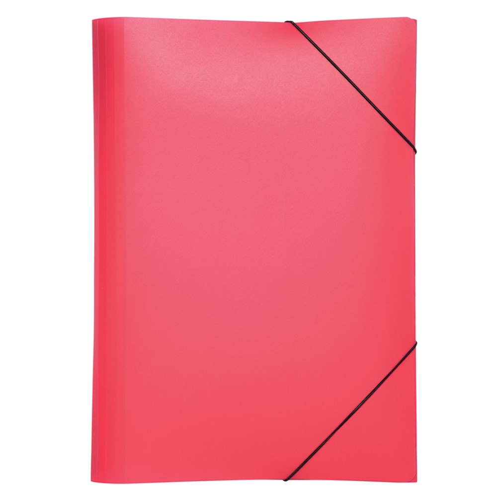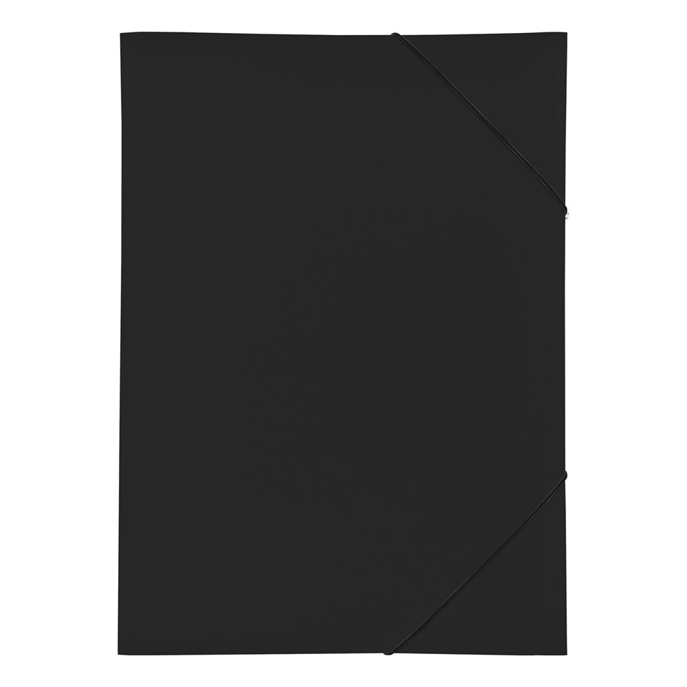 Fascikl od izdržljivog polipropilena s 3 klapne i kutnim gumicama za zatvaranje. Naborani hrbat za bolju prilagodbu količini sadržaja, gumene stezaljke dobro čuvaju dokumente od ispadanja. Za format do A3.