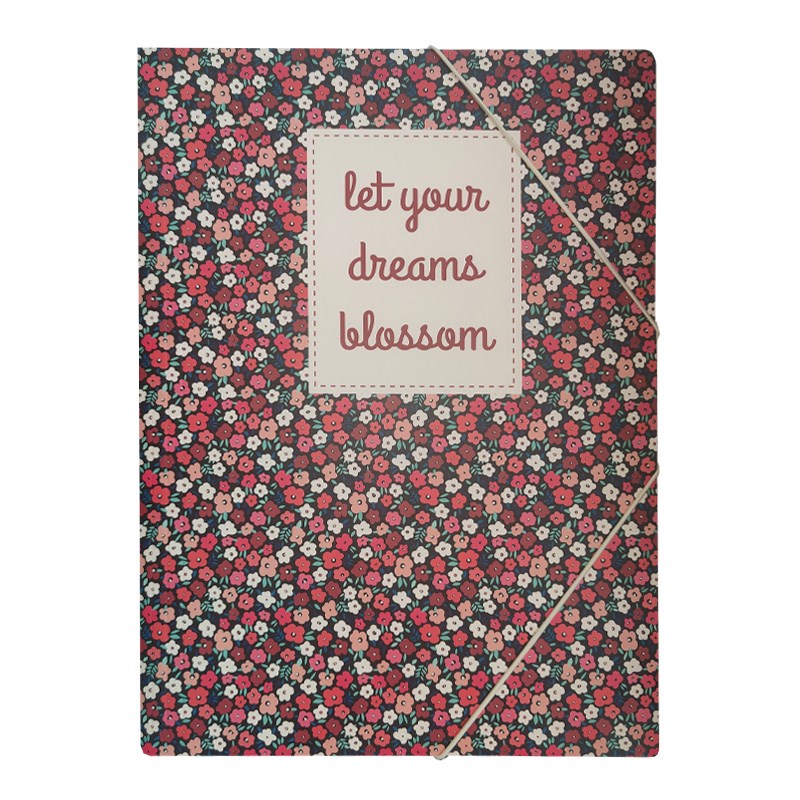 Fascikl šarenog cvjetnog uzorka s 3 klapne i gumicom za zatvaranje. Format A4