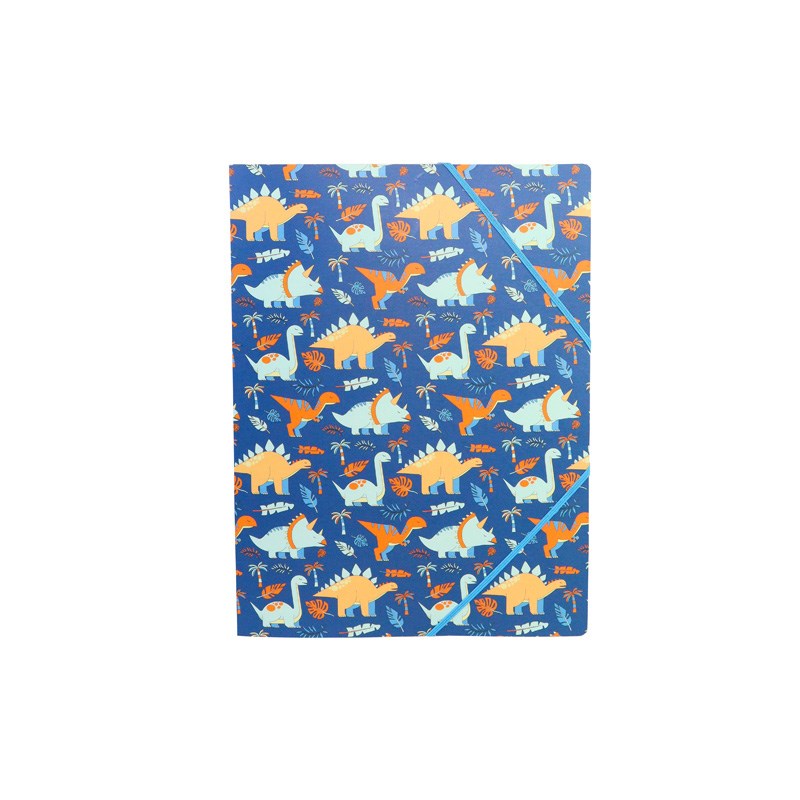 Fascikl s 3 klapne i gumicom za zatvaranje s dječjim motivom dinosaura. Idealno za spremanje školskih listića, obavijesti, testova i ostalih papira. A4 dimenzija