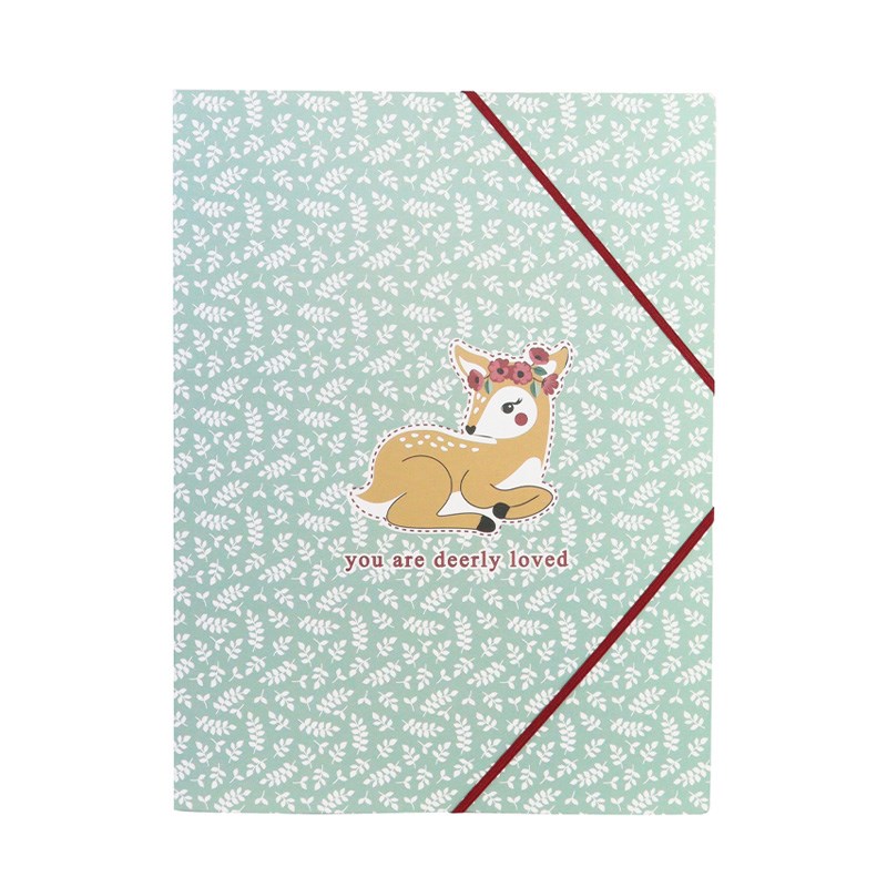 Fascikl s 3 klapne i gumicom za spremanje školskih listića, testova, radova, informacija i ostalih papira. Nježni motiv bambija. Dimenzija A4