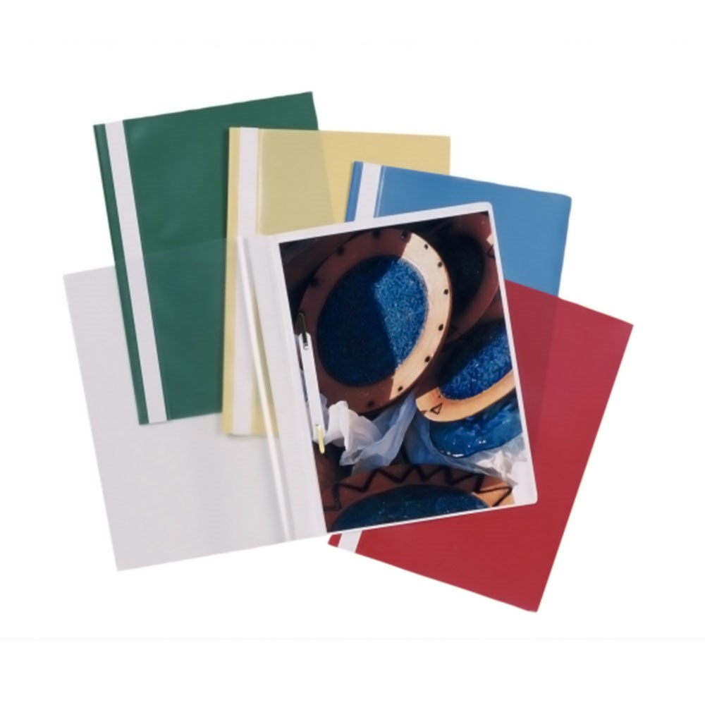 Plastični fascikl s mehanizmom za uvez. Kapacitet je do 160 listova. Na prednjoj strani je traka za oznaku sadržaja. Prva strana je nereflektirajuća i prozirna.