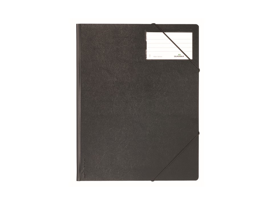 Fascikl od čvrstog krutog PVC s kutnim gumicama za zatvaranje (bez klapni). Za nošenje i zaštitu papira i dokumenata. Prozorčić za označavanje sadržaja veličine posjetnice (57 x 90 mm).