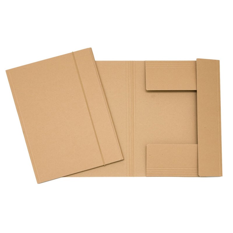 Fascikl za format A4 izrađen od natur kartona, tri klapne i gumica za zatvaranje. Dimenzije: 23 x 34 cm.