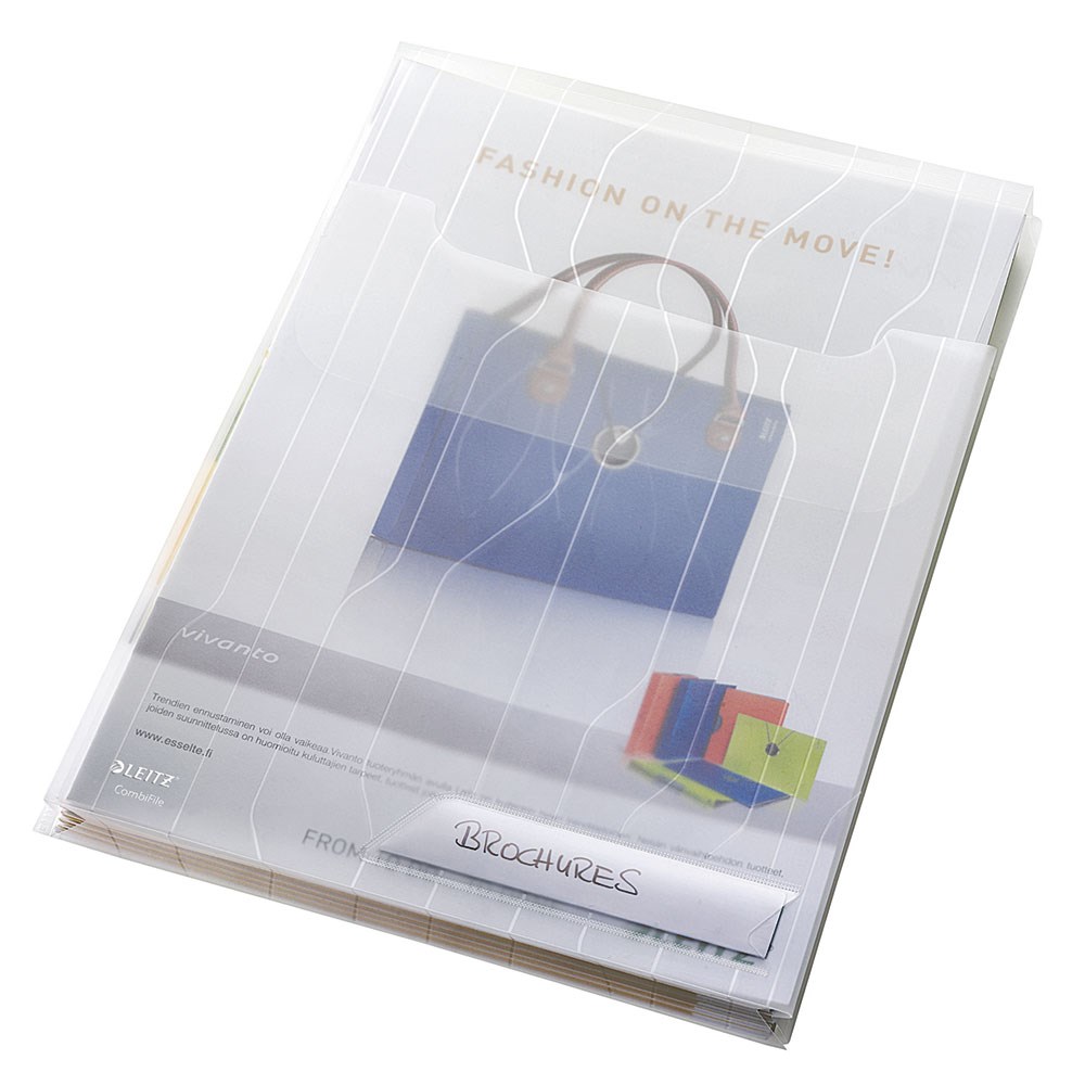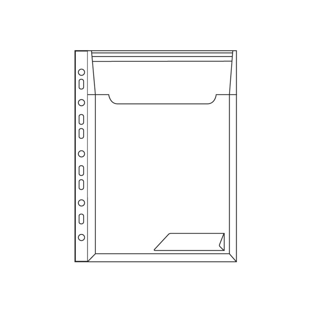 Uložni A4 fascikl od 200mic polipropilena s džepićem za naslov. Otvaranje s gornje strane preklop za zatvaranje. Prošireni za veći kapacitet -do 150 listova. Rupice za ulaganje u registrator/prospekt mapu koje se mogu sakriti.