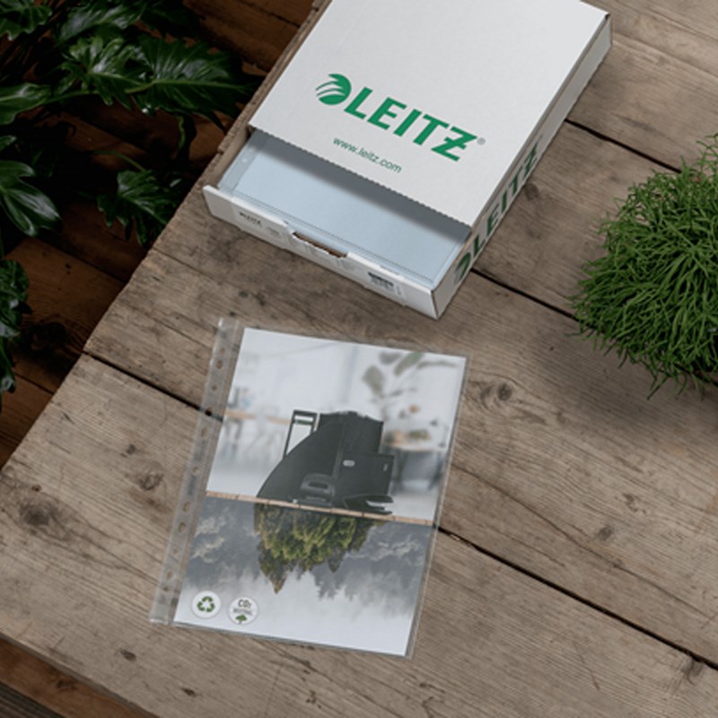 Uložni fascikl A4 za spremanje dokumenata i papira i njihovu zaštitu. Vrhunske kvalitete s univerzalnim rupama za odlaganje u registratore. Napravljen od 90% reciklirane plastike, C02 neutralan i 100% reciklirajući. 100 mikrona