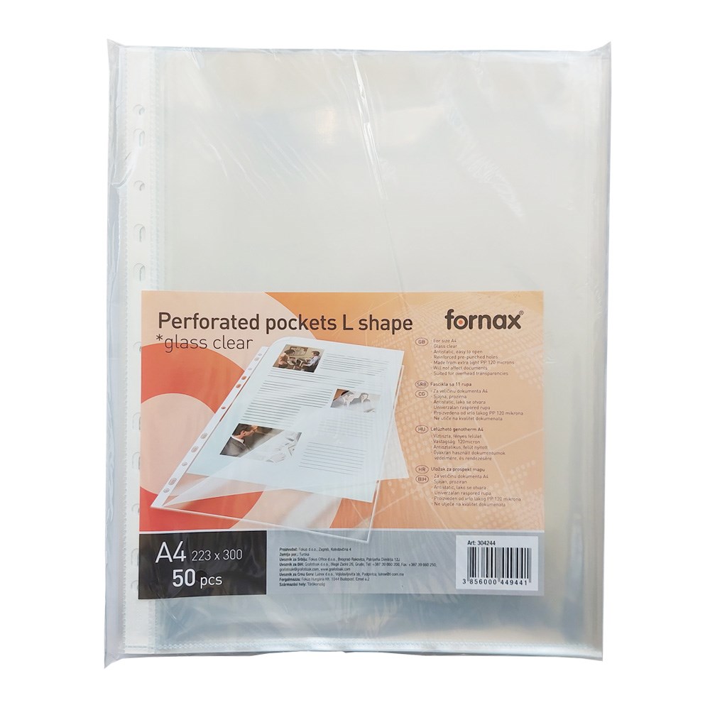 Prozirni fascikl od polipropilena s rupicama za ulaganje u registratore ili prospekt mape, otvor s gornje i bočne strane.